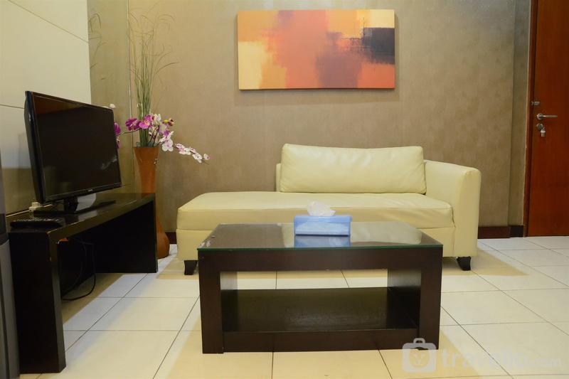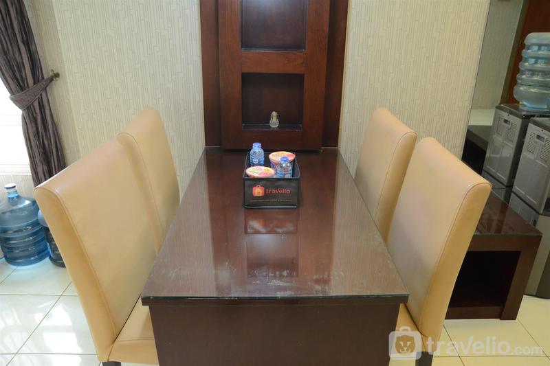 terletak dekat dengan sudirman central business district (scbd) dan beberapa pusat perbelanjaan terkenal menjadikan apartemen ini pilihan tepat bagi anda yang akan melakukan perjalanan bisnis ke jakarta. gedung apartemen ini difasilitasi dengan kolam renang outdoor agar anda bisa bersantai sejenak dari kepenatan aktifitas di jakarta. atm, laundry dan supermarket juga tersedia untuk mempermudah kegiatan sehari-hari anda. saat memasuki unit apartemen ini, anda akan disambut oleh ruang tamu bernuansa cozy minimalis yang didominasi oleh gradasi warna krem and hitam. sofa bed berukuran single dan tv set tersedia untuk menemani waktu luang anda. tidak jauh dari ruang tamu, terdapat meja makan untuk empat orang. bagi anda yang lebih suka memasak makanan sendiri, disediakan dapur berukuran minimalis dengan peralatan lengkap seperti rice cooker, microwave, kompor gas 2 tungku, wastafel, kulkas, dispenser serta sederet perlatan makan dan memasak lainnya. dalam kamar tidur utama, terdapat kasur berukuran queen yang dibalut linen berwarna putih dengan kualitas hotel berbintang. selain itu, tersedia juga lemari pakaian berukuran besar untuk menyimpan barang-barang anda. sedangkan di kamar tidur kedua, disediakan kasur berukuran single, lemari pakaian serta meja rias dengan cermin besar. terdapat satu kamar mandi yang dilengkapi dengan wastafel, cermin, shower serta perlengkapan mandi lainnya pada hunian ini. cozy 2br at sudirman park apartment near to scbd by travelio dapat disewa secara harian, mingguan, dan bulanan. berbagai pusat perkantoran dapat dengan mudah diakses seperti wisma 46 kota bni tower yang berjarak 5 menit jalan kaki (400 m) dari gedung apartemen ini; 4 menit berkendara ke sahid sudirman center (800 m) dan menara astra (1,0 km); 6 menit berkendara menuju menara indofood (2,4 km); 10 menit berkendara ke world trade center (3,4 km); serta sampoerna strategic square bisa ditempuh dengan 14 menit berkendara (3,4 km). bandara internasional soekarno hatta berjarak 46 menit berkendara (32,6 km) dari gedung apartemen ini; 4 menit berkendara ke halte transjakarta dukuh atas 1 (2,0 km); serta stasiun sudirman bisa diakses dengan 7 menit berkendara (3,1 km). tempat penting lainnya seperti jakarta convention center berjarak 5,1 km dari apartemen ini dan bisa ditempuh dengan berkendara selama 15 menit. berbagai pusat perbelanjaan ternama di jakarta bisa menjadi pilihan anda untuk menghabiskan waktu bersama rekan bisnis. diantaranya adalah plaza crystal yang bisa ditempuh dengan jalan kaki selama 5 menit (400 m); 5 menit jalan kaki menuju citywalk sudirman (600 m); plaza indonesia dan mal grand indonesia berjarak 10 menit berkendara (2,5 km); 11 menit berkendara ke plaza semanggi (3,3 km); 12 menit berkendara menuju lotte shopping avenue (2,4 km) dan plaza festival (5,1 km); serta senayan city, fx sudirman, dan plaza senayan yang bisa anda akses dengan berkendara selama 25 menit. tempat-tempat hiburan malam di pusat jakarta juga bisa menjadi alternatif hiburan anda setelah lelah bekerja seperti immigrant yang berjarak 7 menit berkendara (2,6 km) dari apartemen ini; 14 menit berkendara (4,3 km) ke dragonfly; serta 15 menit berkendara menuju fable atau exodus. selain itu, gedung apartemen ini juga terletak tidak jauh dengan beberapa tempat rekreasi seperti taman suropati (3,8 km); taman menteng (4,2 km); monumen nasional (5,6 km) serta senayan golf course (8,3 km) yang bisa anda jadikan pilihan untuk menghabiskan waktu dengan olahraga bersama rekan bisnis. gedung apartemen sudirman park menawarkan berbagai fasilitas sebagai pilihan liburan anda seperti atm, laundry, supermarket, kolam renang hingga playground. unit apartemen ini terdiri dari dua kamar tidur, ruang tamu, meja makan, dapur dan kamar mandi. pada kamar tidur utama tersedia kasur berukuran queen, sedangkan kamar tidur kedua dilengkapi dengan kasur berukuran single. kedua ranjang pada kamar tidur dibalut dengan linen putih berkualitas hotel serta tersedia juga lemari pakaian yang bisa dijadikan tempat untuk menaruh barang-barang anda. terdapat sofa bed berukuran single serta tv set pada ruang tamu hunian ini. tidak jauh dari ruang tamu, tersedia meja makan untuk empat orang dan dapur yang dilengkapi wastafel, kompor gas dua tungku, kulkas, dispenser serta peralatan makan dan memasak lainnya. satu kamar mandi dengan wastafel, cermin, shower, handuk dan peralatan mandi lainnya juga tersedia. unit apartemen ini tidak menyediakan akses wifi gratis.